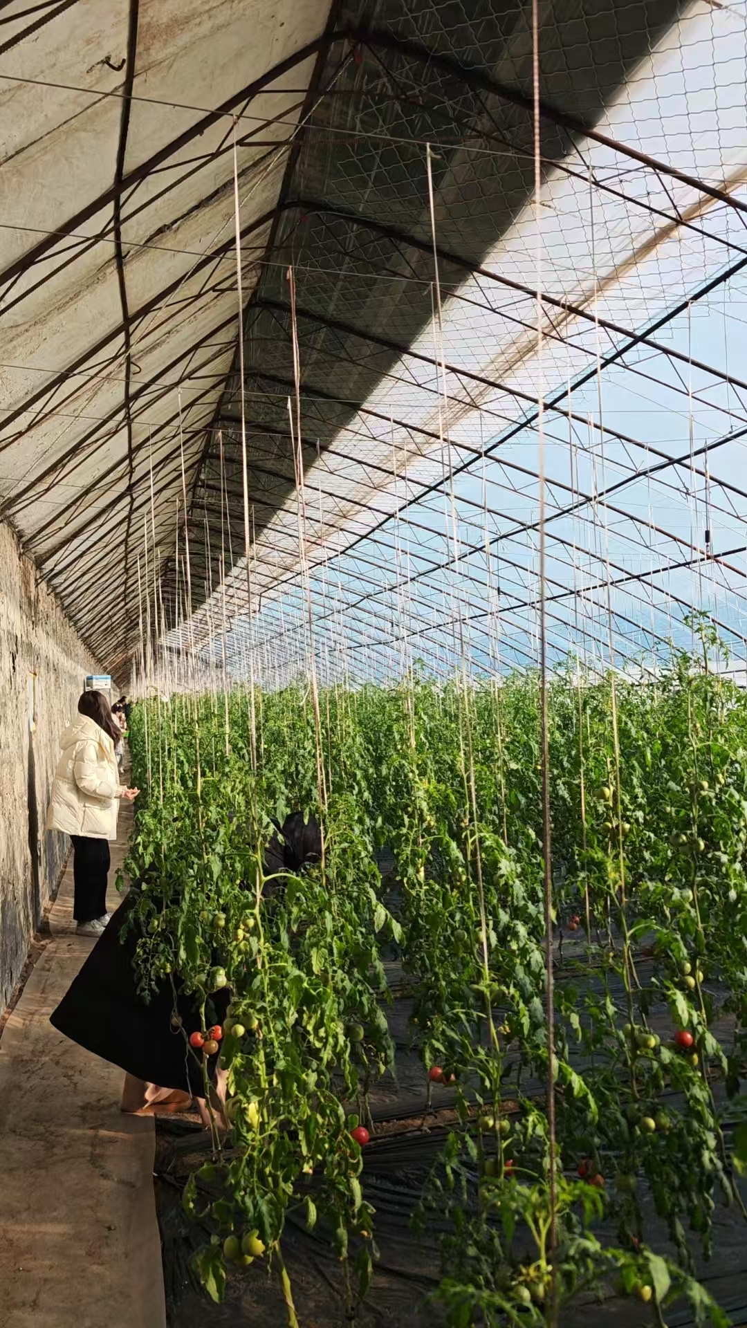 冬日的阳光洒满温室大棚,红彤彤的草莓点缀绿叶间,大家手持篮筐精心挑选,欢声笑语不断;西红柿种植区更显热闹,职工们穿梭藤架间,体验采摘的乐趣,分享丰收的喜悦。