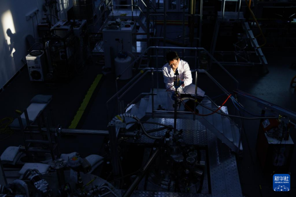 1月26日,在位于北京怀柔的中国科学院物理研究所综合极端条件实验装置极低温强磁场量子振荡实验站,中国科学院电工研究所研究员刘建华(右)、中国科学院电工研究所博士后周本哲在工作中。新华社记者 金立旺 摄