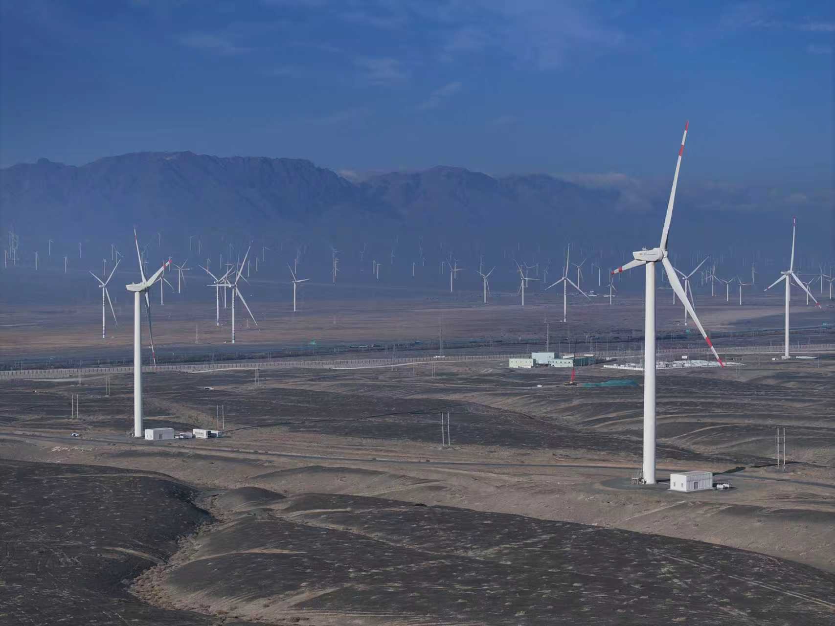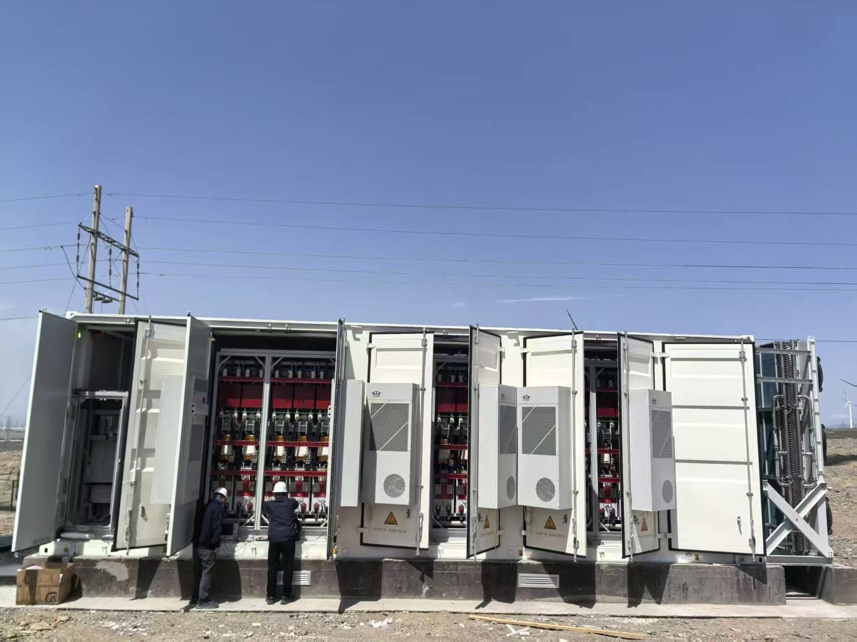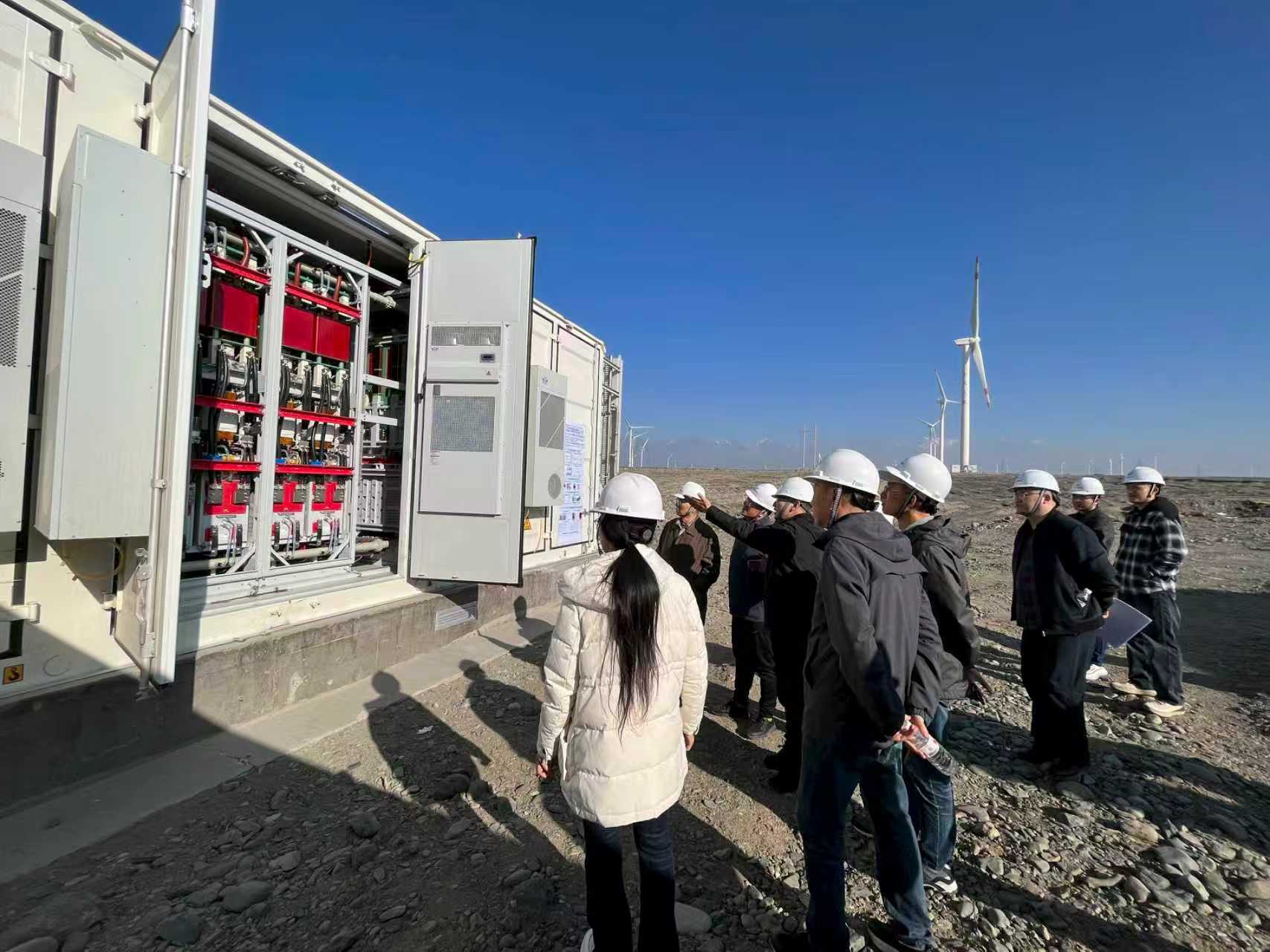 达坂城风电场地处天山山脉风口,七八级大风都是“家常便饭”。2025年12月,风电全直流发电系统调试进入关键阶段,一场寒潮不期而至,当地温度骤降至零下20多度,调试现场风雪交加,狂风甚至吹坏一扇集装箱铁门。但攻坚任务紧迫,团队成员依然冒雪坚守现场调试。
