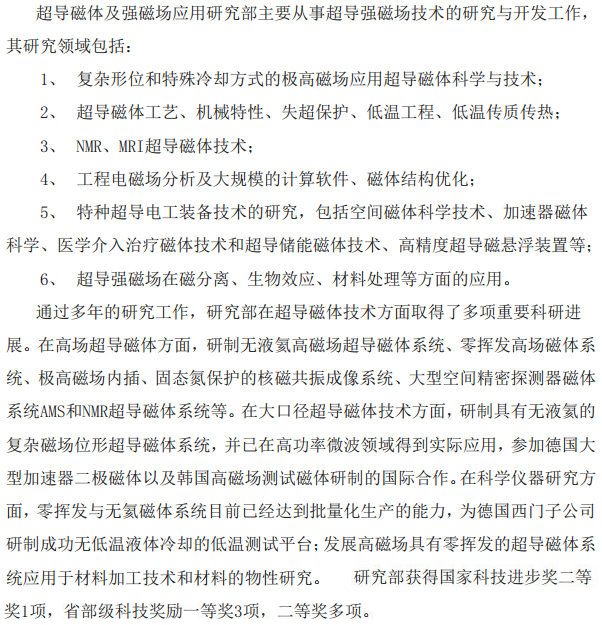 超导磁体及强磁场应用研究部
